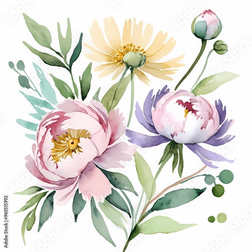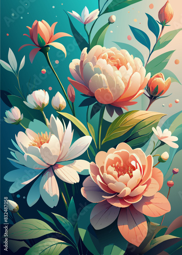 Vintage botanical flower bunch. beautiful fantasy vintage wallpaper botanical flower bunch,vintage motif for floral print digital background. Pastel Drawing. Illustration