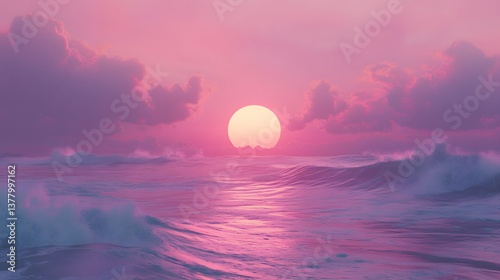 Sunset over a coastal landscape with vibrant colors and reflections on the water, Coastal sunset with vibrant colors and water reflections