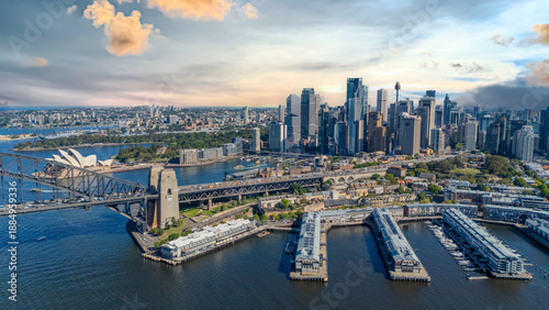 A bird's-eye view of modern urban waterfronts and small moorings for yachts and boats.