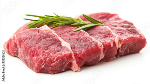 Juicy beef strips are arranged neatly with fresh rosemary for culinary inspiration