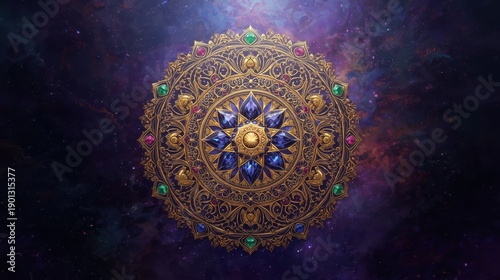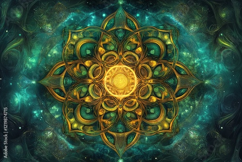 Emerald Gold Mandala Art, Detailed Design, Dark Green Background, Spiritual Wallpaper