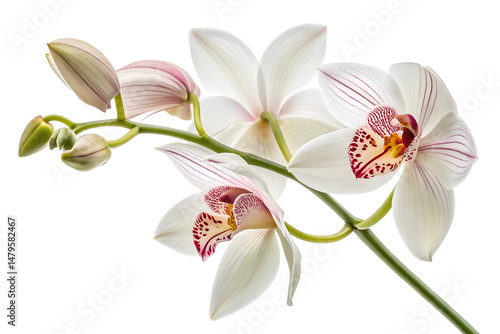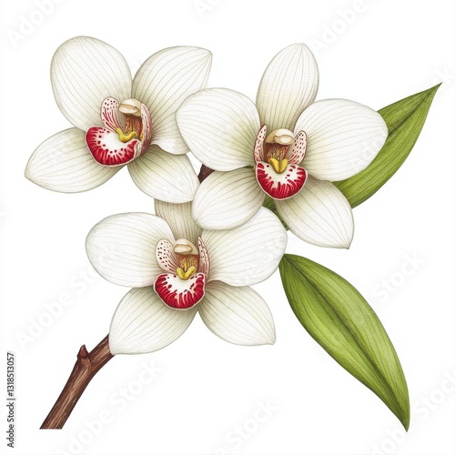 Two Yellow Vanilla Flowers with Brown Vanilla Pods on Transparent Background, PNG