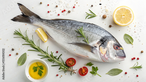 Fresh Fish Surrounded by Herbs and Spices for Cooking Generative AI