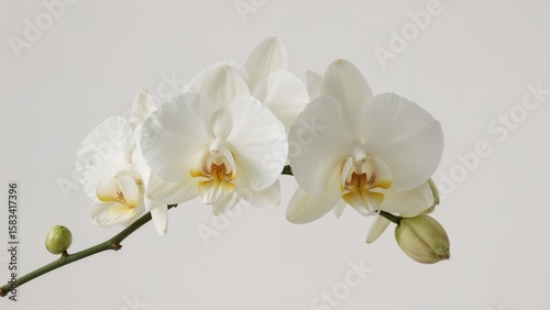 a close-up of a delicate white orchid flower on a white isolated background, elegant and pure design