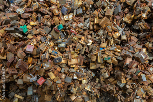 Many unsorted different garbage in landfill. Recycling, ecology, environmental disaster, pollution concept