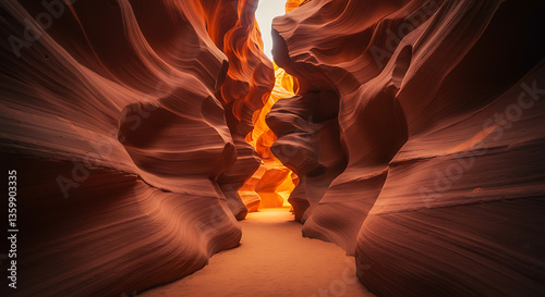 A stunning view of the iconic Antelope Canyon with sunlight filtering through the narrow, winding sandstone walls