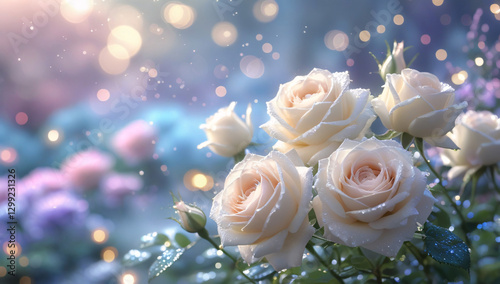 Creamy blurred roses and dreamy light leaks