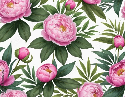 Seamless vintage floral pattern with pink roses and delicate leaves, perfect for a spring-themed design or a beautiful wallpaper