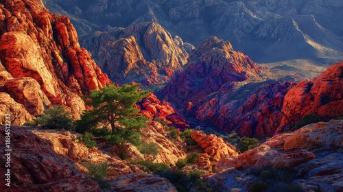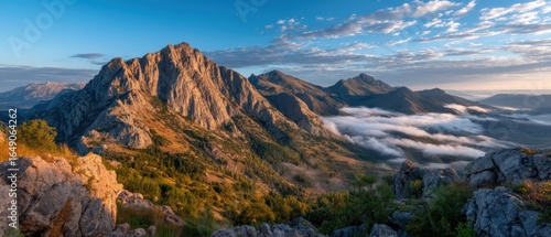 Autumn mountain vista with rocky peak