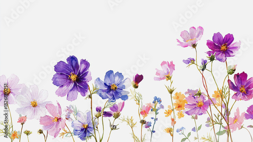 watercolor wildflowers, pastel botanical flowers, white background