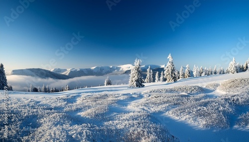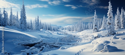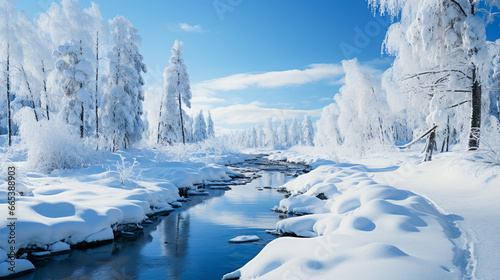 Cross-country skiing in winter wonderland in Scandinavia at sunset