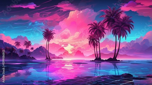 Palm Trees Silhouettes On Tropical Beach At Sunset - Modern Vintage Colors