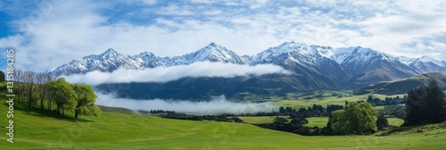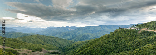 panorama of beautiful countryside of romania. sunny afternoon. wonderful springtime landscape in mountains. grassy field and rolling hills. rural scenery