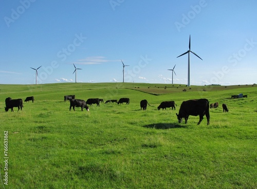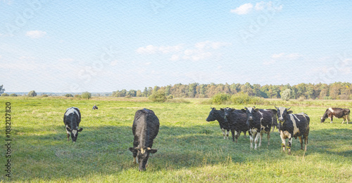 Cows in the Dutch countryside during a foggy morning.