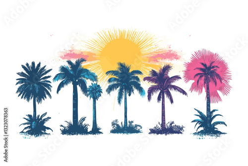 set a silhouette of palm trees against the background of