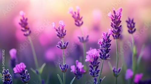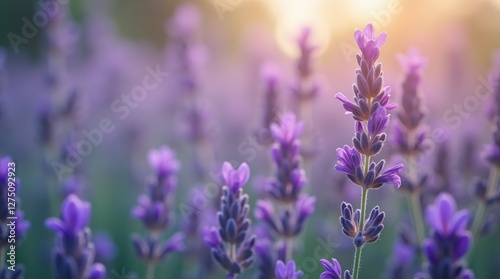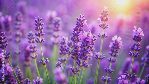 Lavender in flower field wide panoramic view