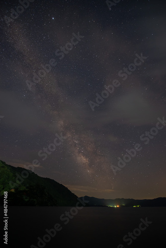 A beautiful landscape view of half cloudy circle on reflecting on water at night