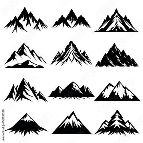 Mountains icon vector set. hike, travel illustration sign collection. camping symbol.