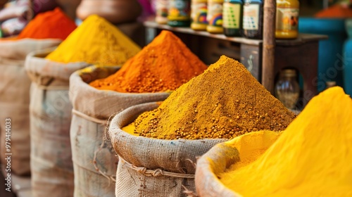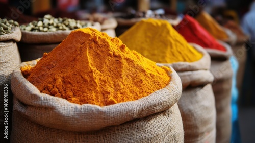 Indian colored spices at local market.