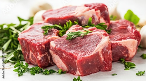 Uncooked beef steak meat with pepper spices.