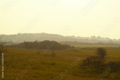 tranquil countryside landscape at sunrise, generative ai