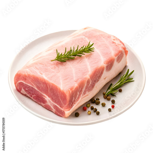 Fresh tuna fish fillet steak with rosemary and lemon isolated on white background