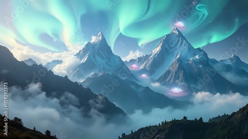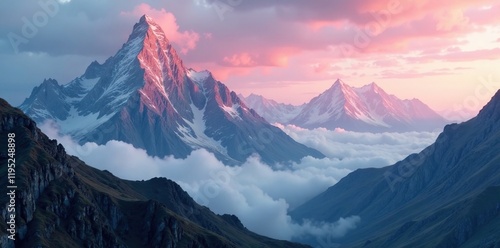 rugged mountain range dusted with snow, its peaks piercing the crisp blue sky