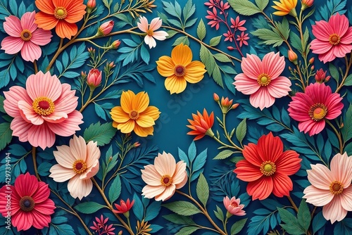 A floral print on a black background
