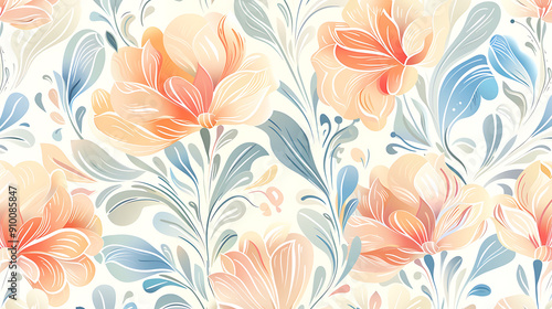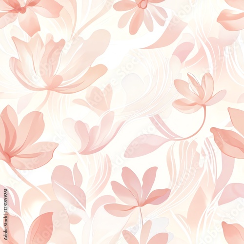 Abstract floral pattern with soft, pastel colors in peach, white, and cream.